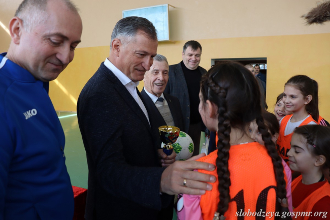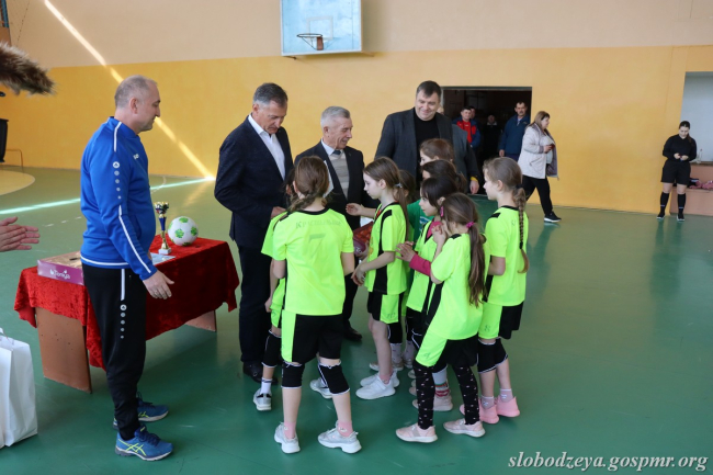 Перед награждением к спортсменкам обратился председатель Федерации футбола Приднестровья Павел Прокудин. Он поздравил юных участниц с наступающим праздником.