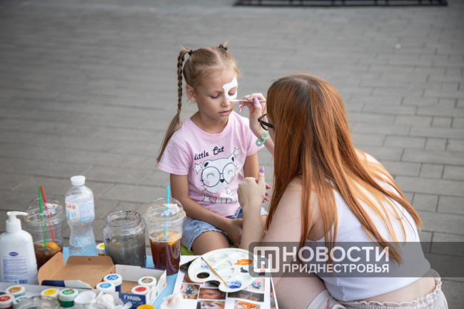 Тем ребятам, кто хотел выделяться в этот вечер, наносили на лицо аквагрим. Одну из таких локаций организовали Влада и Юлия. Для них аквагрим – хобби, девушки признаются, что любят на праздники радовать горожан своим творчеством.