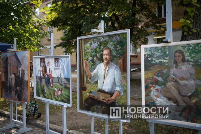 Неподалёку на аллее расположилась выставка дипломных работ студентов художественного колледжа. На картинах – приднестровский край.