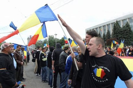 Фотография с акции ультраправых в Кишинёве, ратующих за объединение Молдовы и Румынии.