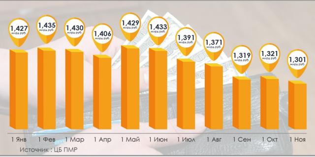 С октября по ноябрь количество наличных денег в обращении уменьшилось на 1,1%, средств в иностранной валюте – на 2%, а вот объём безналичных средств, наоборот, вырос на 2,2%