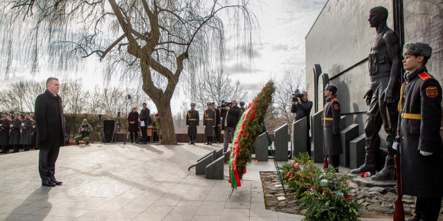 Президент почтил память погибших воинов-интернационалистов От имени приднестровского народа Вадим Красносельский возложил венок к памятнику Воину-афганцу и цветы к подножию монумента Скорбящей Матери 15 Фев., 2021, 10:22 Общество Президент митинг