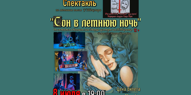 В Бендерах 8 июля покажут шекспировский «Сон в летнюю ночь» Артисты «Э.Т.О.» посвятят его Дню семьи, любви и верности 07 Июл., 2021, 16:26 Анонс Бендеры Анонс