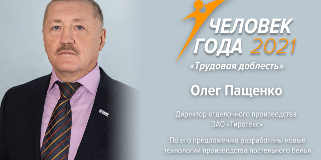 Победителем в номинации «Трудовая доблесть» стал Олег Пащенко По его предложению разработаны новые технологии производства рисунков на ткани 26 Фев., 2022, 20:53 Общество Человек года