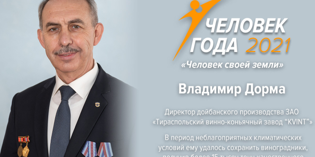 «Человек своей земли». В этой номинации победил Владимир Дорма В период неблагоприятных климатических условий ему удалось спасти виноградники, получив более 15 тысяч тонн качественного урожая 26 Фев., 2022, 20:57 Общество Человек года