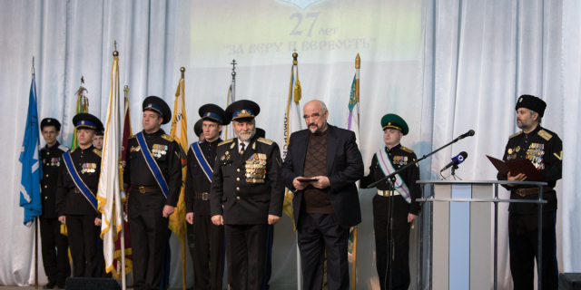 На торжественном сходе войсковой атаман рассказал, почему казаки носили серьги в ушах и каковы традиции современных представителей ЧКВ. Игорь Небейголова вручил некоторым казакам по случаю праздника ордена, медали и грамоты