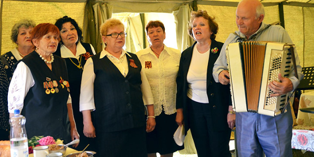 Ветераны дегустировали гречневую кашу с тушенкой и с удовольствием пели военные песни