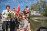 В праздничную программу вошли песни военных лет, танцевальные постановки, кинопоказ, всех желающих угощали солдатской кашей