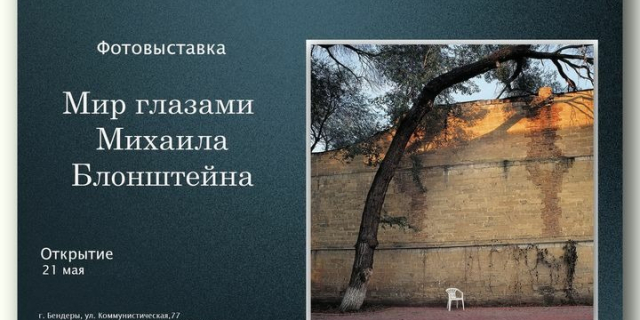 В Бендерах откроется выставка «Мир глазами Михаила Блонштейна» Она включает в себя почти 70 фотографий, отражающих разные этапы творческого пути фотохудожника 19 Май, 2021, 18:05 Анонс Бендеры музей