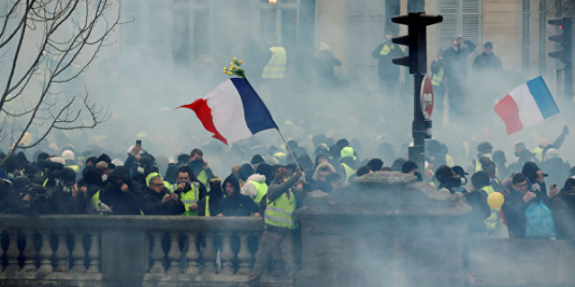 По всей Франции на протесты вышли порядка 125 тыс. человек В Париже на улицы вышли 10 тыс. демонстрантов 09 Дек., 2018, 13:10 В мире Франция протест