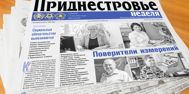 Субботнее «Приднестровье» расскажет о людях редкой профессии – метрологах Также в номере - материалы о ветеранах Великой Отечественной войны и защитниках ПМР 13 Май, 2022, 16:04 Анонс Газета "Приднестровье"