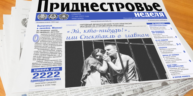 Газета «Приднестровье» анонсировала содержание субботнего номера В свежем выпуске – материалы о героических предках, о премьерном спектакле «Эй, кто-нибудь!», об уличных музыкантах и советы для дачников 20 Май, 2022, 15:29 Анонс Газета "Приднестровье"