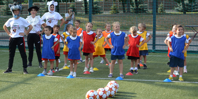 Дети играли в футбол вместе с любимыми героями из мультфильмов
