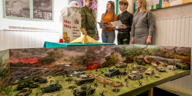 В Тираспольском техникуме коммерции разместили диораму сражения под Прохоровкой Композицию, повествующую об одном из событий Великой Отечественной войны, выполнил собственноручно руководитель НВП Виктор Лаевский 02 Мар., 2020, 13:11 Общество Тирасполь История