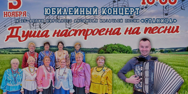 Ансамбль казачьей песни «Станица» к своему юбилею даст концерт в Тирасполе Познакомиться с казачьей культурой зрителей приглашают 5 ноября 04 Ноя., 2024, 14:55 Анонс концерт Тирасполь