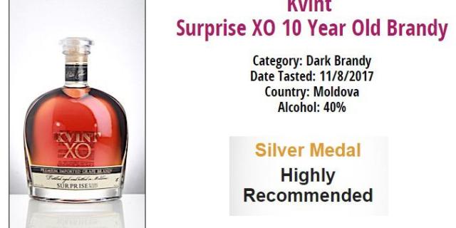 Приднестровский коньяк получил серебряную медаль международного конкурса в Чикаго 10-летнему «Kvint Surprise XO» присуждена награда в категории «Highly Recommended» 15 Дек., 2017, 13:04 Общество Приднестровье Тирасполь