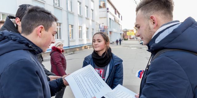 Активисты «Звезды» поздравили мужчин с Днем защитника Отечества Ребята раздали более 300 поздравительных открыток и георгиевских лент 26 Фев., 2019, 17:22 Общество МД «Звезда» День защитника Отечества
