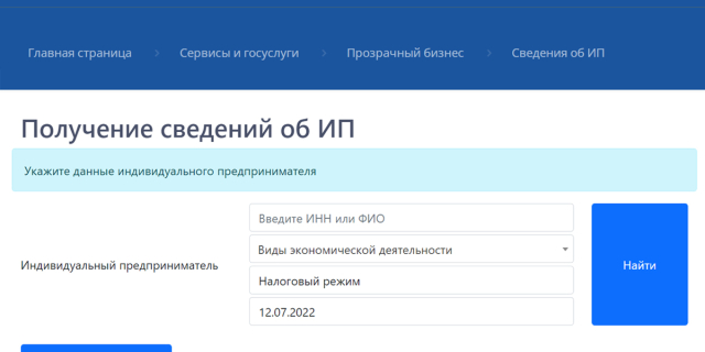 На сайте Минфина появился новый полезный функционал Функция получения сведений об индивидуальных предпринимателях стала более подробной 12 Июл., 2022, 16:12 Экономика Минфин