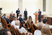 Президент поздравил сотрудников Министерства юстиции ПМР с 30-летием ведомства Слова особой благодарности Вадим Красносельский адресовал ветеранам ведомства 24 Июл., 2021, 09:00 Общество Президент поздравление