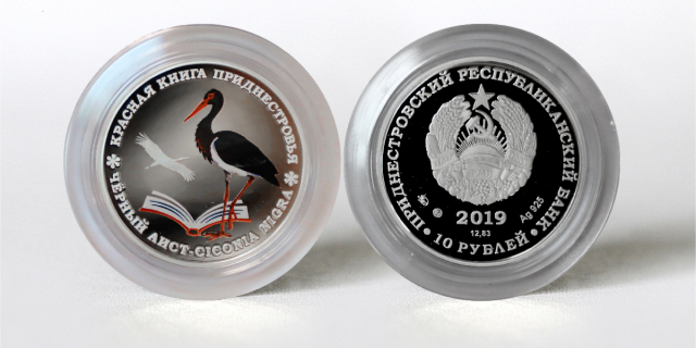 ПРБ выпустил памятные монеты «Чёрный аист» Часть из них выполнена из серебра номиналом 10 рублей 19 Сен., 2019, 17:52 Общество Приднестровье ПРБ