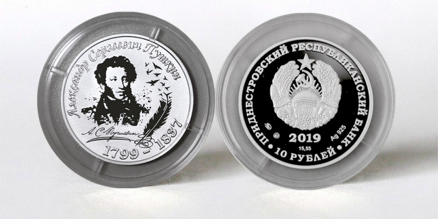 В Приднестровье выпустили серебряные монеты к 220-летию со дня рождения А.С. Пушкина Также в обращение вводятся монеты из серии «Красная книга Приднестровья. Флора» 06 Июн., 2019, 13:33 Общество монеты ПРБ