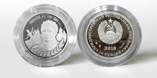 ПРБ ввёл в обращение памятную монету «Генерал от кавалерии Раевский Н.Н.» Номинал монеты – 10 рублей, тираж – 250 штук 14 Ноя., 2018, 17:19 Общество ПРБ монеты