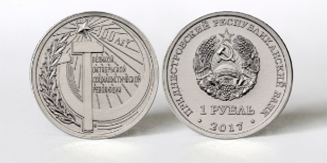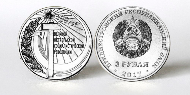 Рублёвые монеты «100 лет Великой Октябрьской социалистической революции» выпустили в ПРБ Они выполнены из стали с никелевым покрытием 31 Окт., 2017, 15:43 Экономика монеты ПРБ