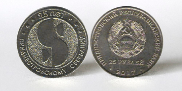Центробанк выпустил памятные монеты «25 лет Приднестровскому Сберегательному банку» Они выполнены из недрагоценных металлов достоинством в 25 рублей 26 Дек., 2017, 18:47 Экономика ПРБ монеты