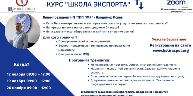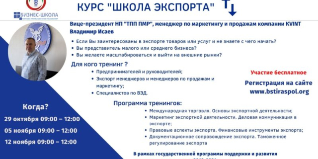 Представители малого бизнеса могут пройти курс в «Школе экспорта» Занятия организованы Торгово-промышленной палатой Приднестровья 28 Окт., 2021, 16:35 Экономика Тирасполь ТПП