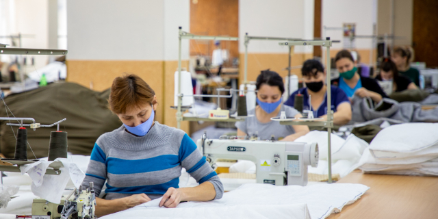 ЗАО «Одема» удалось в первом полугодии 2020 года увеличить доход В период пандемии COVID-19 швейная фабрика шила костюмы и маски для медперсонала 12 Сен., 2020, 13:12 Экономика Правительство ПМР Одема