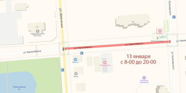 В понедельник столичную улицу Карла Маркса частично перекроют На участке от улицы Шевченко до Луначарского будут менять водопровод 11 Янв., 2020, 15:15 Тирасполь перекрытие движения