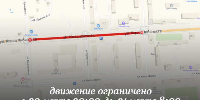 В ночь на 21 марта в Тирасполе перекроют часть улицы Карла Либкнехта Для движения автотранспорта закроют участок между улицами Луначарского и Манойлова 19 Мар., 2020, 16:12 Общество Тирасполь Дороги
