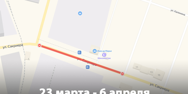 По столичной улице Сакриера ограничат движение транспорта Участок дороги от улицы Украинской до переулка Строителей перекроют с 23 марта по 6 апреля 19 Мар., 2020, 19:09 Тирасполь перекрытие движения