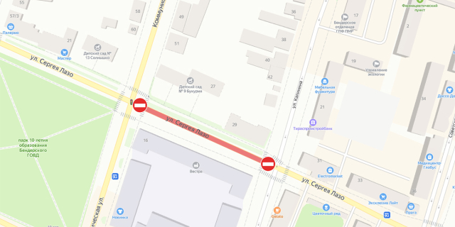 Перекрёсток улиц Коммунистическая и Лазо в Бендерах будет перекрыт до 17 мая Там продолжаются работы по ремонту коллектора и водопровода 15 Май, 2020, 14:09 Общество Бендеры перекрытие движения