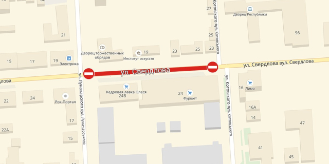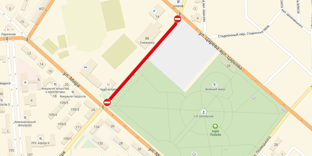 Ограничение будет действовать с 14:00 от ул. Котовского (проездная) до ул. Луначарского (проездная)