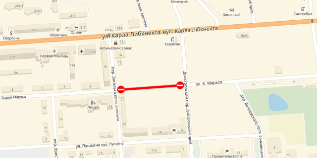 С 20 марта по переулку Христофорова в Тирасполе будет перекрыто движение транспорта