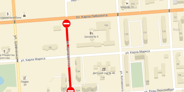Ограничение движения транспорта коснётся участка дороги от улицы Карла Либкнехта до улицы Розы Люксембург