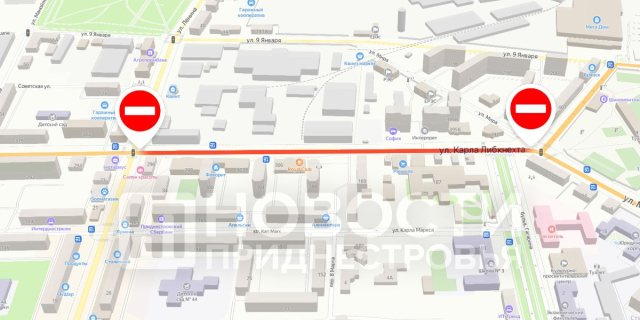 В Тирасполе на несколько дней перекроют часть улицы К. Либкнехта С 26 июня движение будет полностью прекращено на участке от Ленина до пересечения с Мира 23 Июн., 2023, 11:14 Приднестровье Тирасполь перекрытие движения