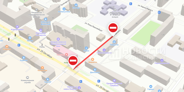 30 мая часть улицы Мира в Тирасполе перекроют для движения автотранспорта На участке от Синева до Полецкого будут прокладывать кабельные линии 29 Май, 2023, 18:00 Общество перекрытие движения Тирасполь