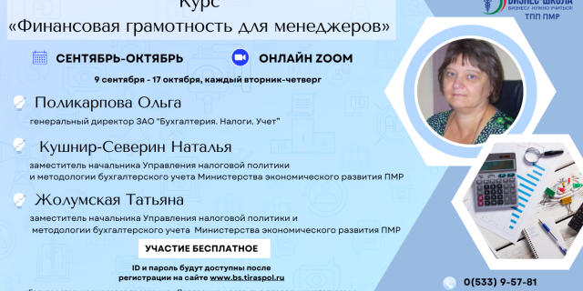 ТПП объявила набор на курс финансовой грамотности для менеджеров Обучение бесплатное 25 Авг., 2024, 12:23 Экономика Тирасполь ТПП