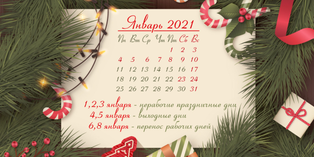 6 и 8 января 2021 года объявлены выходными днями, однако их нужно будет отработать 16 и 30 января