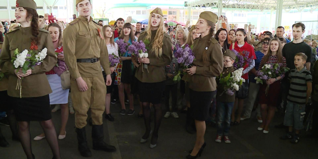 На Зелёном рынке Тирасполя пели «День Победы», «Смуглянку» и «Катюшу» Более полутысячи посетителей рынка стали участниками песенного флешмоба ко Дню Победы 07 Май, 2017, 14:29 Общество Тирасполь День Победы