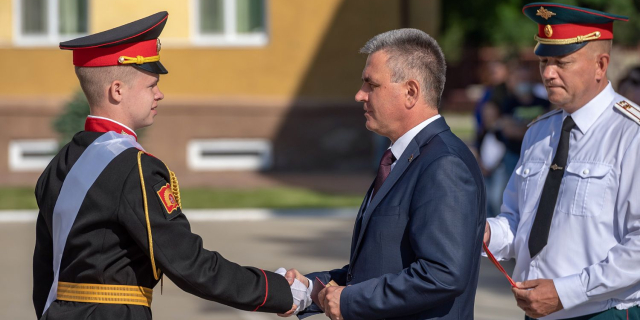 Президент Вадим Красносельский поздравил выпускников Суворовского училища Глава государства лично вручил наиболее отличившимся суворовцам аттестаты и нагрудные знаки 09 Июн., 2021, 10:41 Общество Президент Суворовское училище