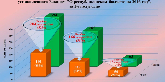 По данным ГТК, этот показатель едва достиг 190 млн рублей ПМР. Вместе с тем плановое задание ведомству, утвержденное Верховным Советом на 2016 год, составило более 870 млн рублей ПМР