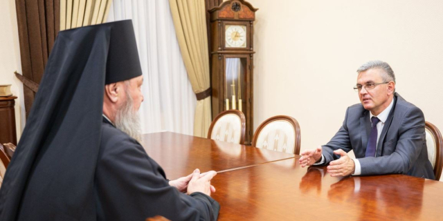 Президент Вадим Красносельский встретился с архиепископом Саввой Обсудили различные аспекты взаимодействия государства и церкви 08 Ноя., 2022, 16:53 Общество Президент Тираспольско-Дубоссарская епархия