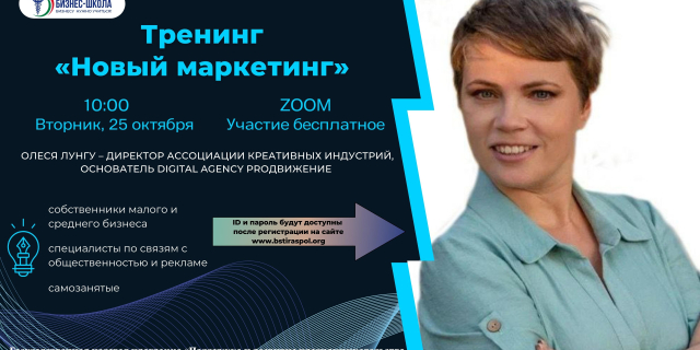 25 октября ТПП организует тренинг «Новый маркетинг» Мероприятие пройдет на платформе ZOOM 24 Окт., 2022, 13:54 Анонс ТПП