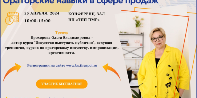 25 апреля ТПП проведет тренинг об ораторских навыках в сфере продаж Необходима регистрация, количество мест ограничено 14 Апр., 2024, 14:31 Анонс ТПП