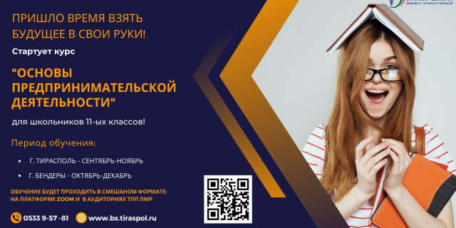 Школьников приглашают на курс «Основы предпринимательской деятельности» Обучение бесплатное и будет организовано для 11-классников в Тирасполе и Бендерах 18 Фев., 2024, 13:30 Экономика ТПП Бизнес-школа