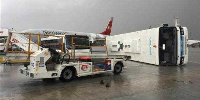 Торнадо перевернул пассажирский автобус в аэропорту Антальи