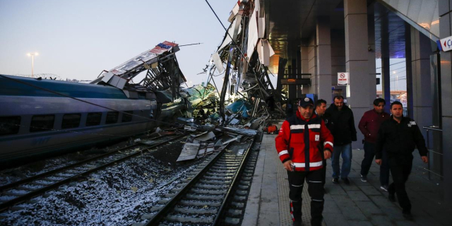 При столкновении двух поездов на железнодорожной станции в Анкаре обрушился надземный пешеходный переход